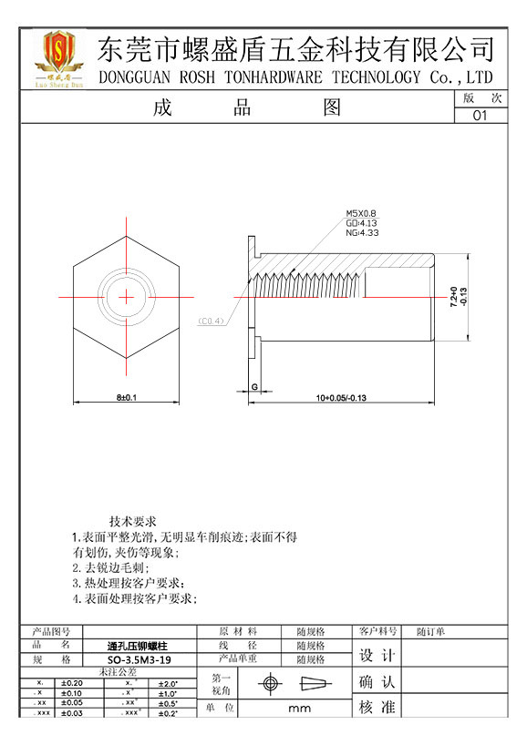 SO-3.5M3-19 壓鉚螺母柱