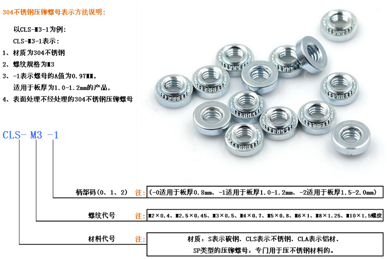 304不銹鋼就是一種在空氣中或者化學(xué)腐蝕介質(zhì)中能夠抵抗腐蝕的一種通用高合金鋼,廣泛應(yīng)用于要求良好綜合性能耐腐蝕合成型性的設(shè)備和機件上。東莞螺盛盾廠家生產(chǎn)的壓鉚螺母、壓鉚螺柱、壓鉚螺釘都采用304不銹鋼優(yōu)質(zhì)材料。所謂的201不銹鋼,其實就是將回收的廢鐵、鉛、銅經(jīng)過二次回爐加工,在通過脫磁處理而成的“不銹鐵”,吸鐵這種方法完全辨別不了,其抗拉強度還不及304不銹鋼的1/3,使用極易導(dǎo)致發(fā)生事故。所以我們特別提醒大家,因為201材質(zhì)成本低廉,所以價格普遍較低——大家一定不要貪圖便宜,而不上受騙。